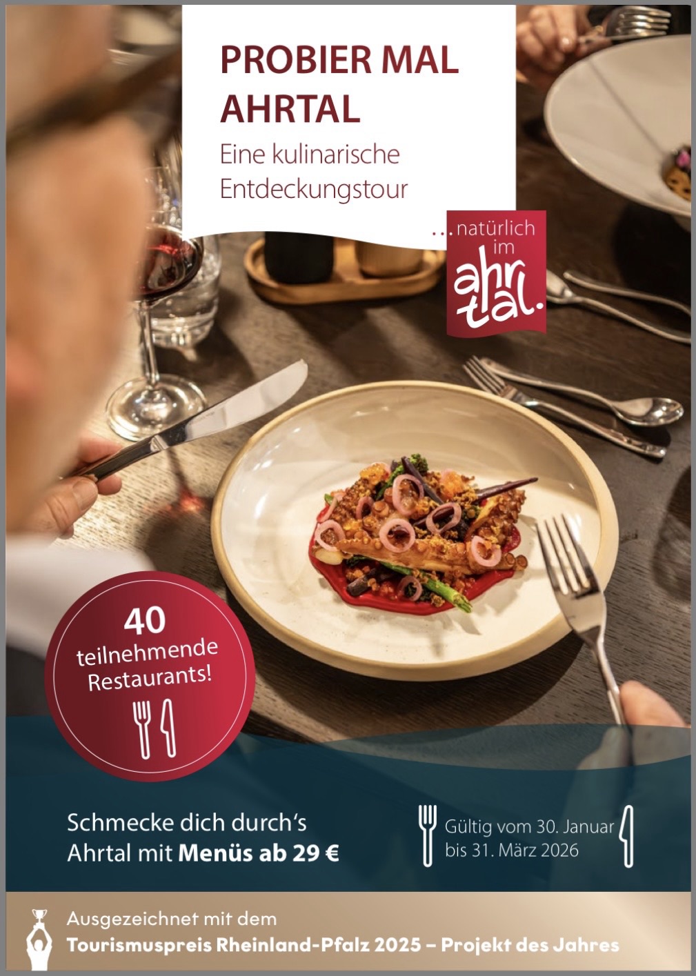 Heute endet die erfolgreiche Aktion „Probier mal Ahrtal“ und wir bedanken uns bei der Ahrtouristik für die großartige Organisation, wunderbare Gestaltung sowie mediale Verbreitung.