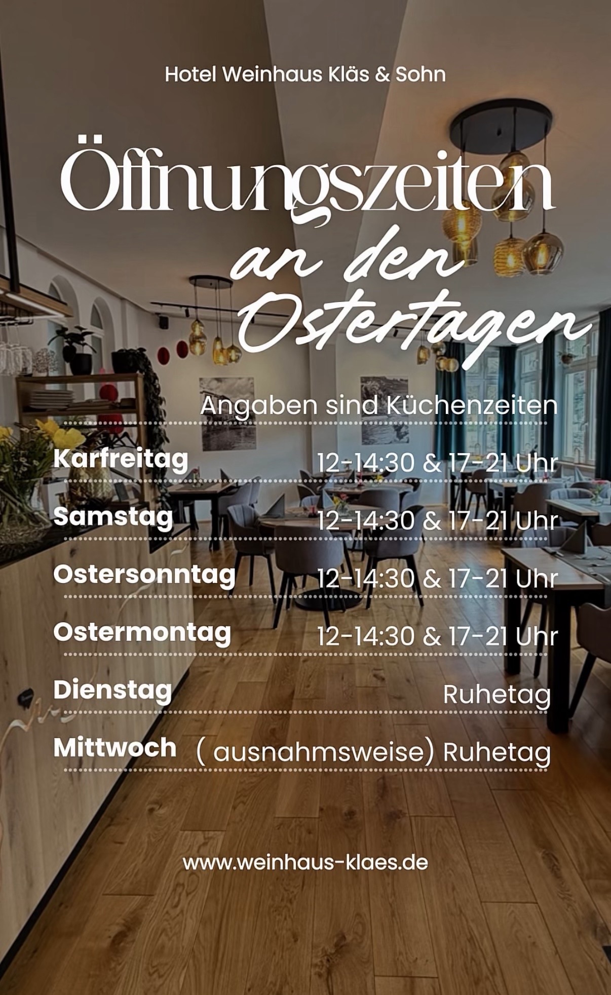 Am Oster Wochenende haben wir noch Gästezimmer frei. Verbringt ein tolles Wochenende bei uns in Mayschoß. Email an info@weinhaus-klaes.de